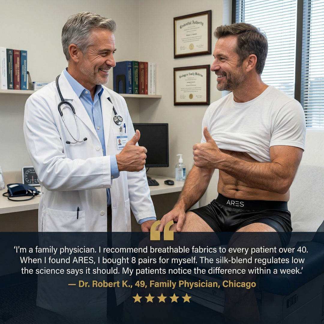 The silk-blend lining releases heat instead of trapping it. Your body stops fighting the fabric. Deep sleep where 70% of daily testosterone is produced finally happens uninterrupted.